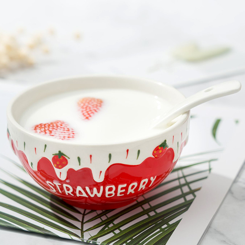 卸売オリジナルかわいいセラミック朝食ボウルイチゴサラダボウル 6inch クリエイティブインフルーツシリアルボウルネットレッド食器