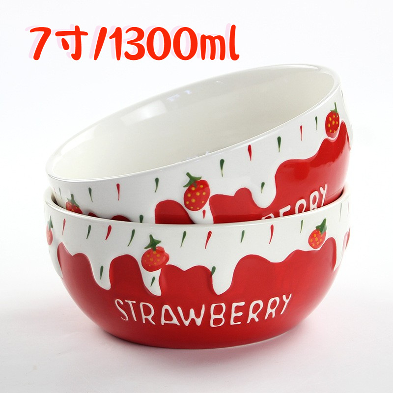 7inch 小さな新鮮なレリーフイチゴボウルインデザインセラミックボウル家庭用大容量スープボウルインスタントラーメンボウル食器