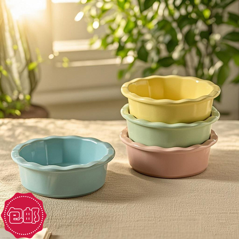 包邮小清新奶油风花型烤碗家用早餐燕麦酸奶碗糕点烘焙陶瓷小碗