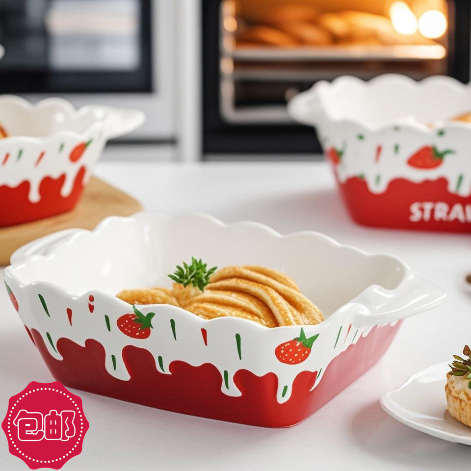 包装高颜値浮雕イチゴ陶磁器皿家庭用耐高温チーズパスタ焼き皿焙煎用具