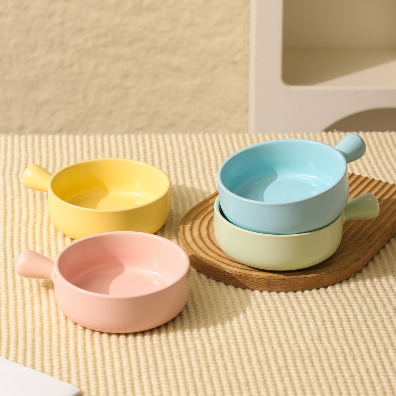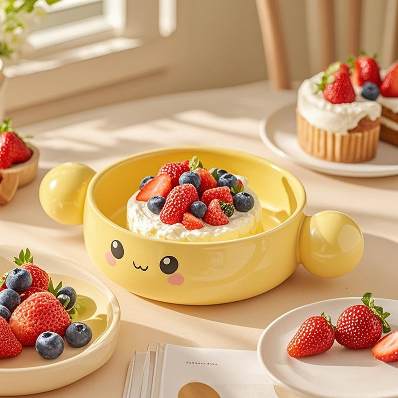 セラミック双耳スープボウル、クリエイティブな火傷防止、かわいい表現、パーソナルヨーグルトサラダフルーツヌードルボウル、高温耐性ベーキングボウル