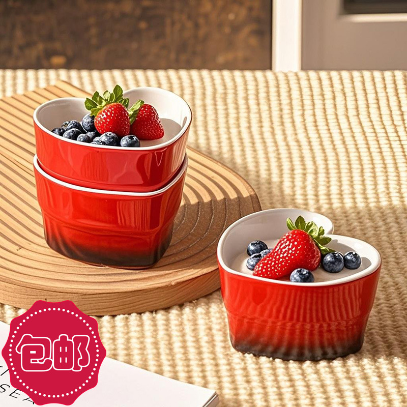 包邮高颜值创意布丁甜品水果沙拉碗家用烘焙糕点心形烤碗陶瓷餐具