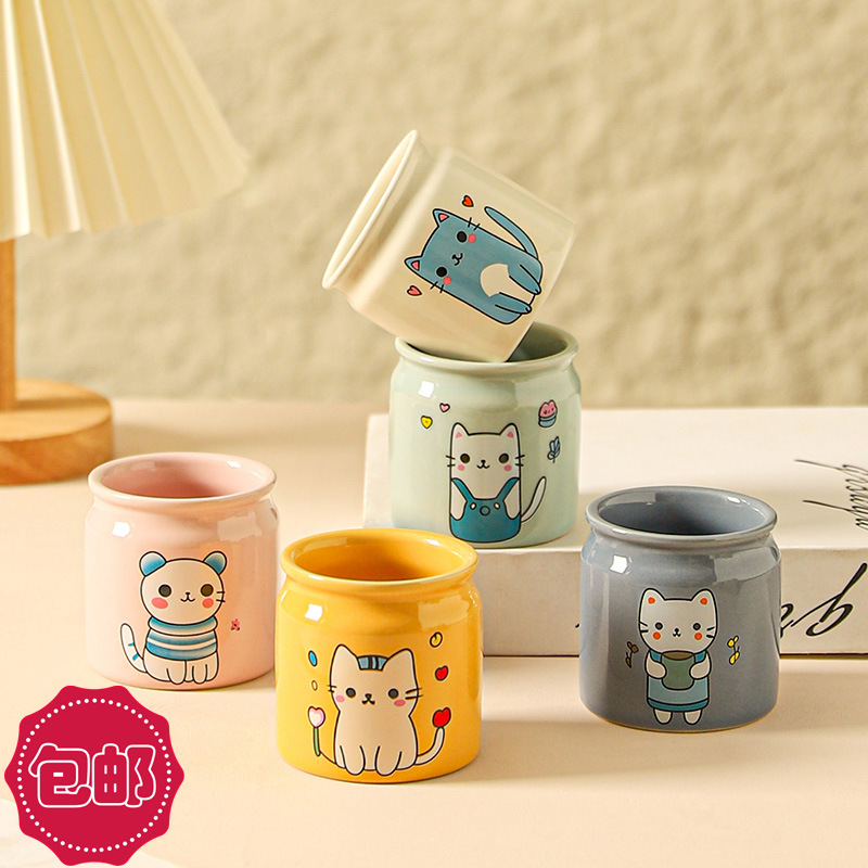 送料無料かわいい漫画猫柄ウォーターカップハイエンドニッチミルクプリンカップマグセラミック食器