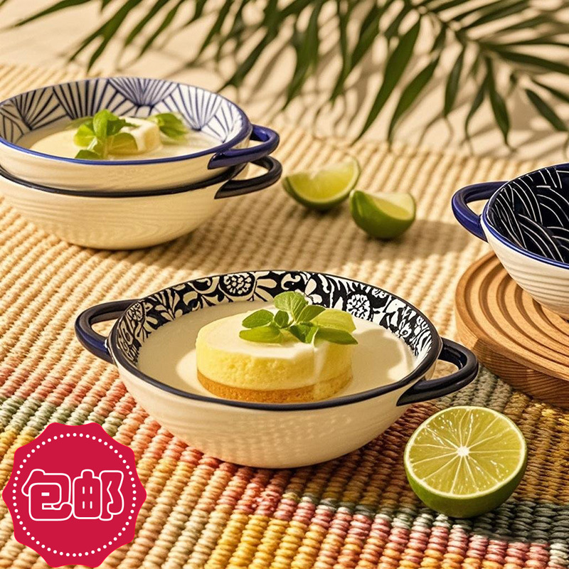 包郵便ステーキピザ焙煎ハンドル焼き皿家庭用釉薬下彩創意かわいい風フルーツサラダ陶磁器皿
