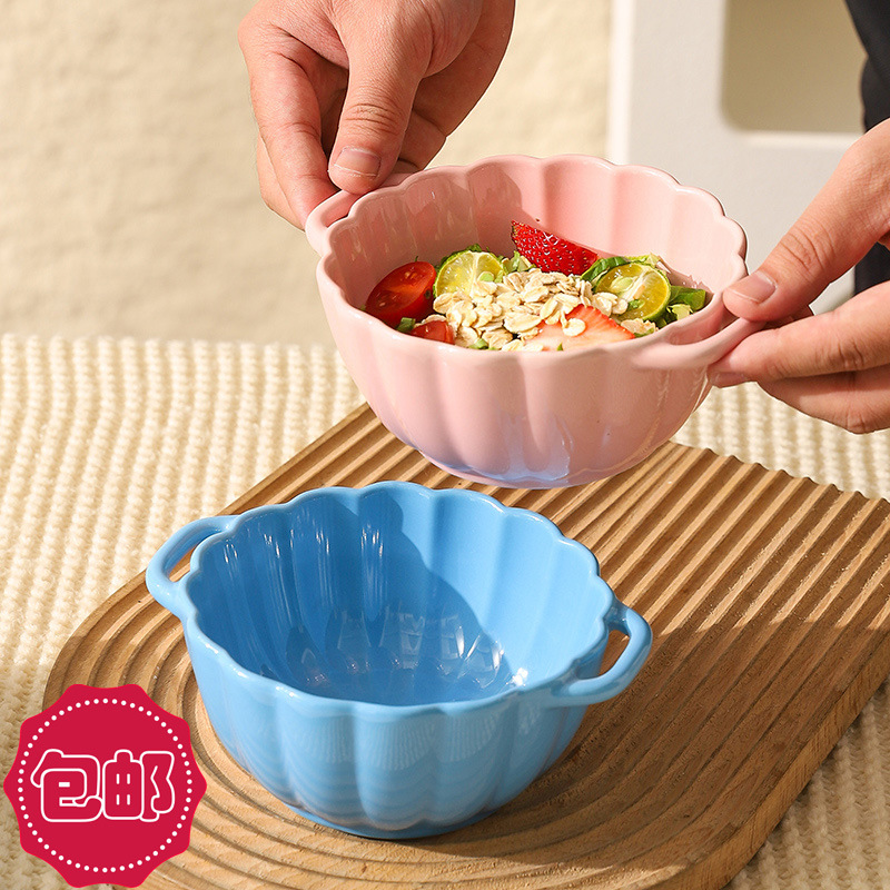 包郵便小清新クリーム風陶磁器両耳茶碗家庭用高級感果物サラダカボチャ碗焙煎用具