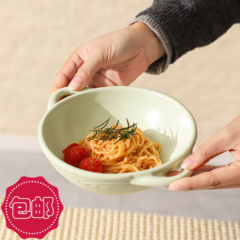 送料無料ハイエンドクリエイティブ抗火傷双耳スープボウル家庭用釉下色大容量サラダインスタントラーメンボウルセラミック食器