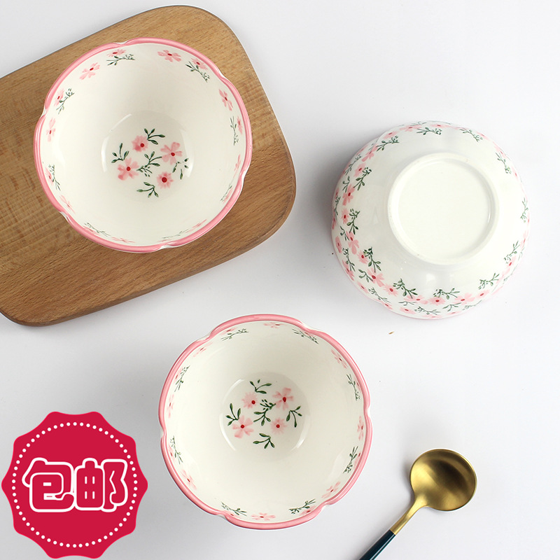 送料無料クリエイティブ 4.75inch 花ボウルイン小さな花柄セラミックボウル家庭用ハイエンド釉下色水玉模様のライスボウル