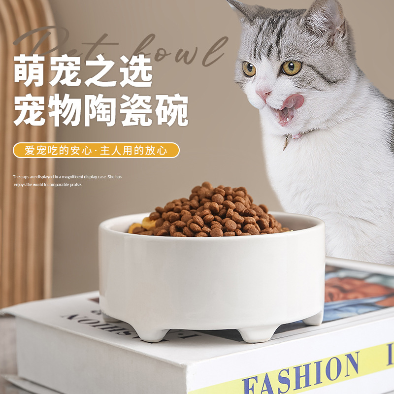 卸売シンプルな風セラミックペットボウル大容量スプラッシュ防止猫ボウル保護頚椎白い犬ボウルペット食器