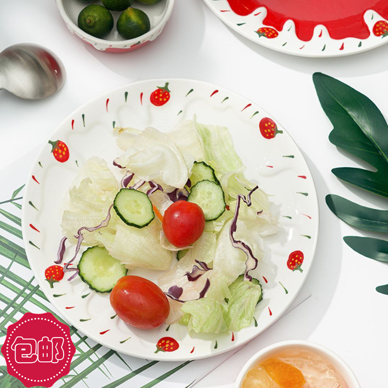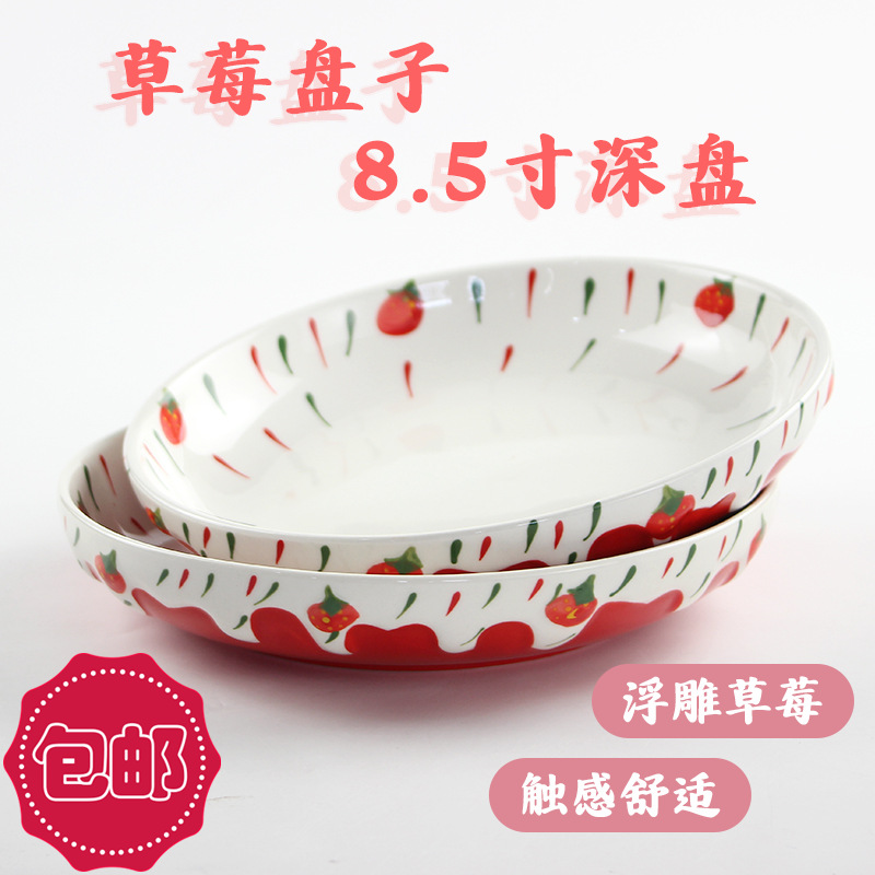 包郵便陶磁器皿小清新レリーフいちご8.5インチ深皿家庭用耐高温円形料理皿皿皿