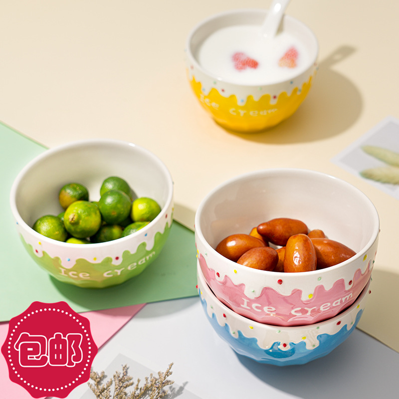 送料無料イン 4.75inch アイスクリームセラミックボウル一人用フルーツサラダボウルホーム朝食オートミールヨーグルトボウル