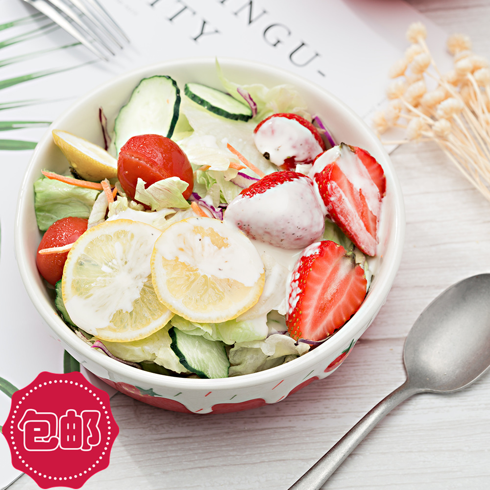 包郵便手描き陶磁器軽食果物サラダボウルinsかわいい風浮き彫りいちご皿ボウル8インチ大容量ボウル
