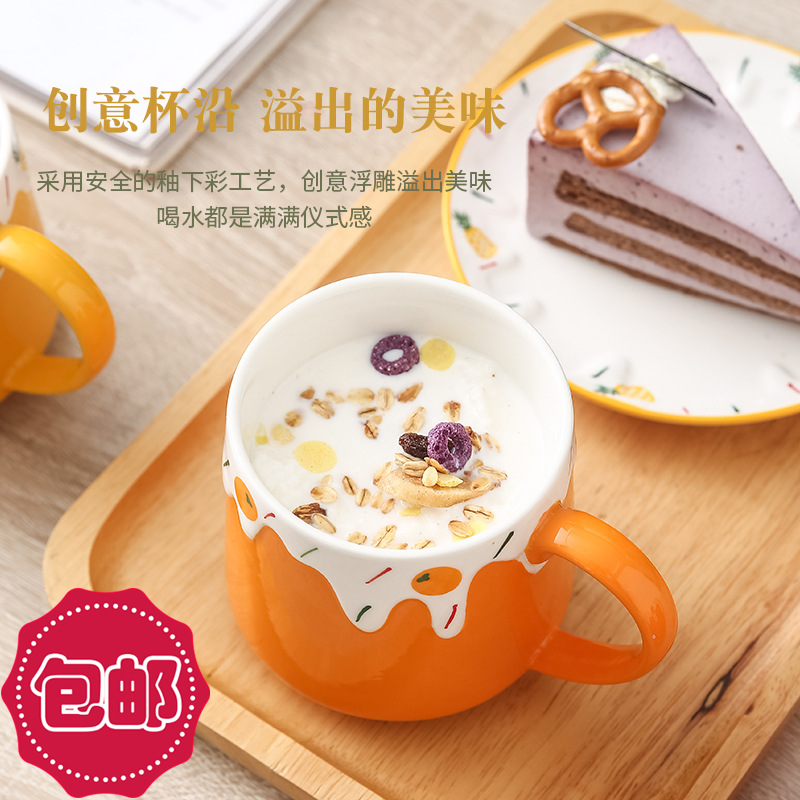 送料無料かわいいカラフルなセラミックコーヒーカップ家庭用ドーパミンジュースカップ高価値レリーフオフィスウォーターカップ