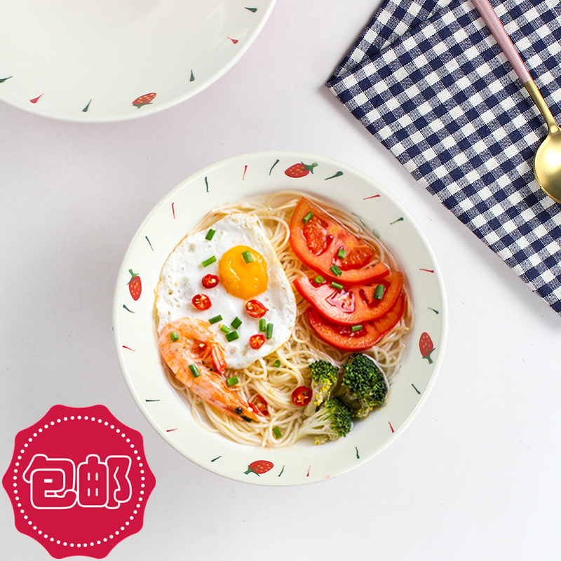 包郵便レリーフいちごラーメン碗陶磁器碗日用耐高温泡碗スープ碗釉薬下彩7寸斗笠碗