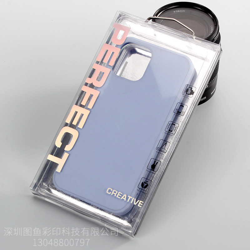 箔押しレーザー携帯ケース包装箱pvc透明タイププラスチック金属フック付き厚さ包装790