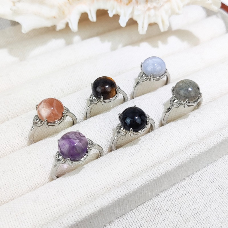 天然石ラピスラズリの指輪の女性の爪は水晶の紫水晶の円の宝石の指輪のパーティーの対外貿易の卸売りをつけます。
