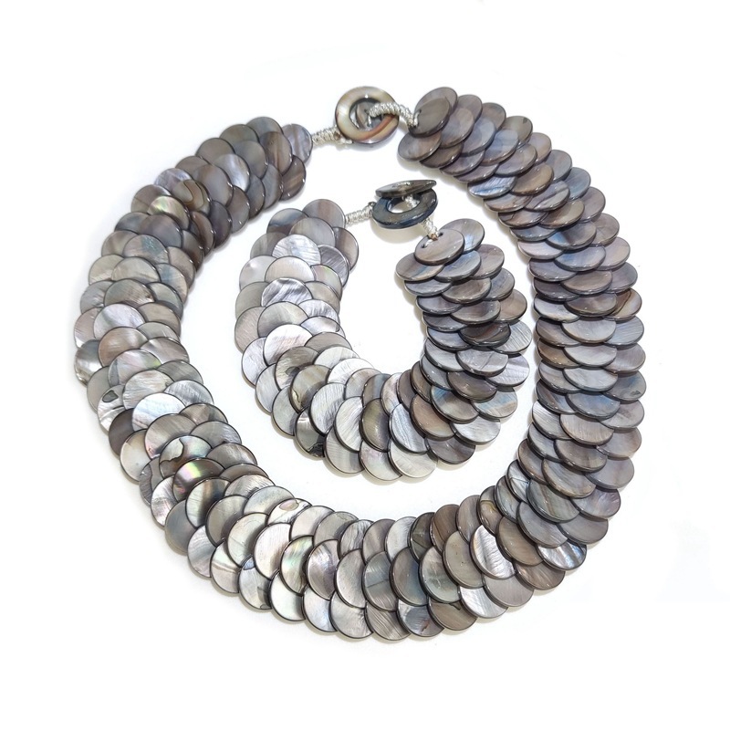 魚鱗貝殻ネックレス天然貝殻手織り鎖骨チェーンヴィンテージ灰貝セーターチェーン卸売り