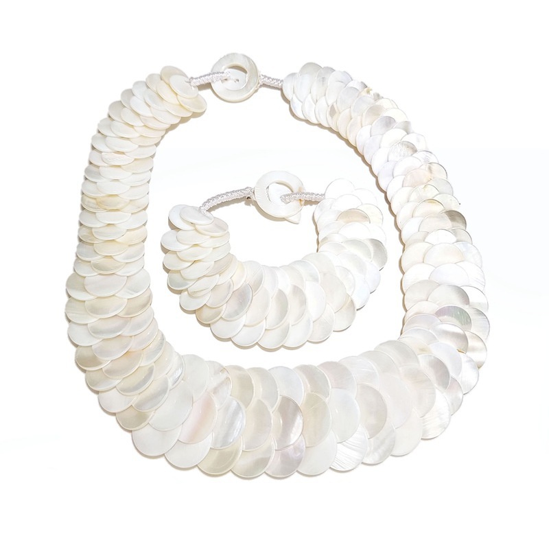 ヤサ天然貝殻手編み鎖骨鎖魚鱗貝殻ネックレス欧米白貝殻ネックレスクロスボーダー