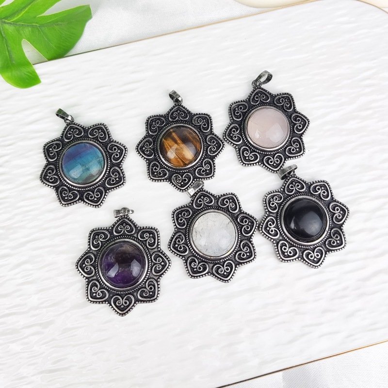 クロスボーダー閃光石水晶卸売り天然石レトロ愛ペンダント虎眼石ペンダントネックレス小物