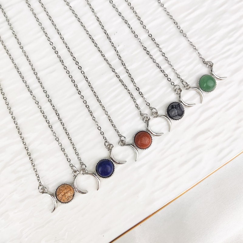 小衆レトロ三日月鎖骨ネックレス太陽ペンダント男性女性天然石緑東陵首鎖ピーコック石