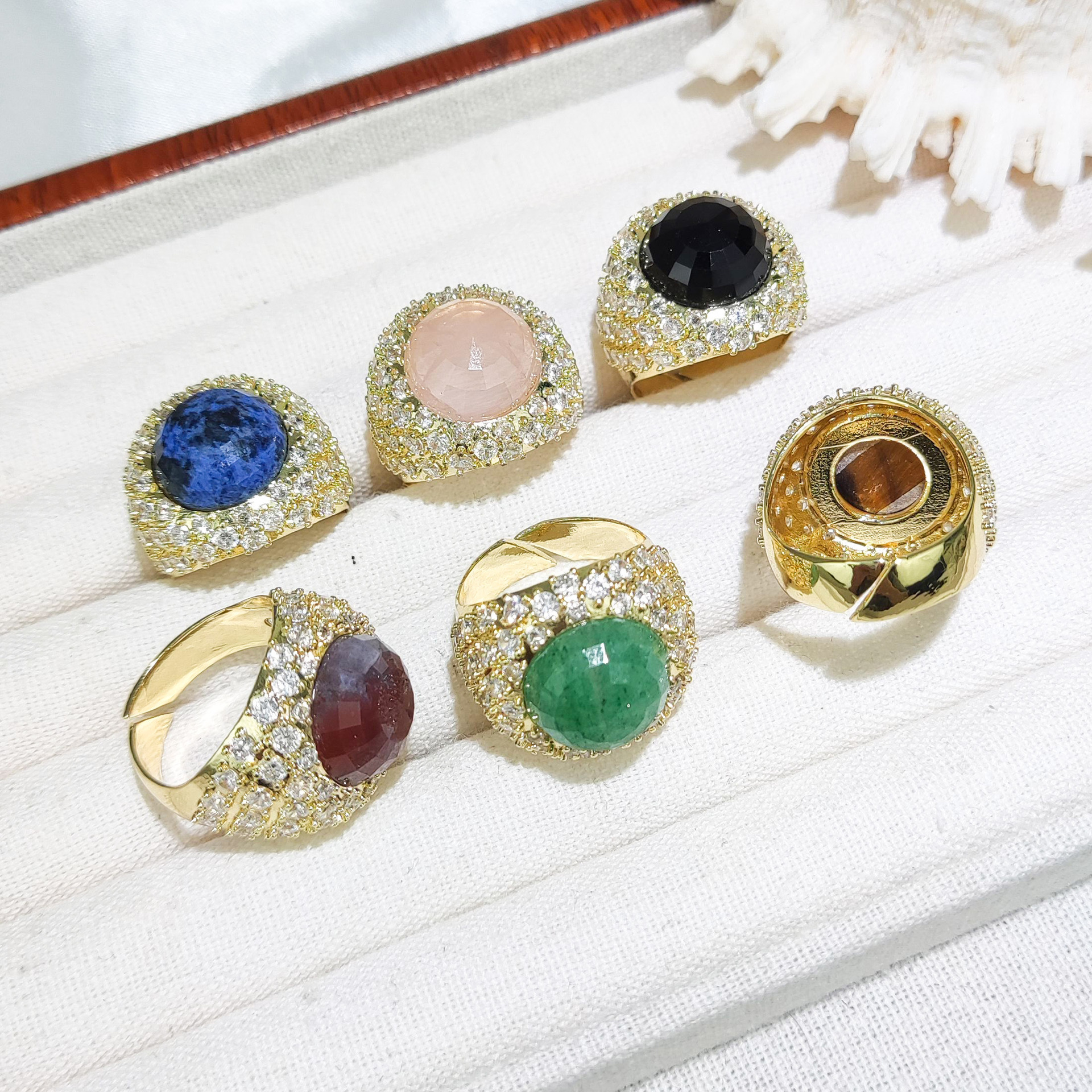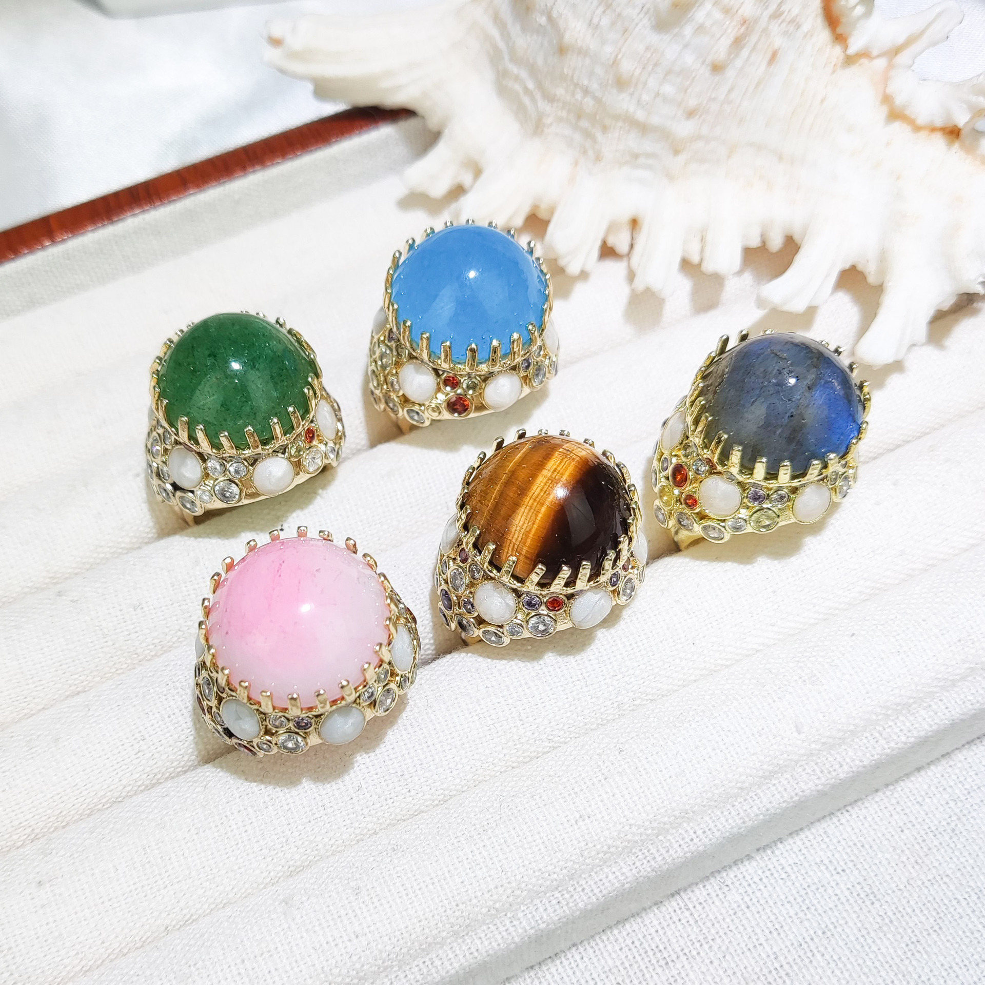 国境を越えた新型の商品の供給源欧米の古法の金色の指輪の天然の虎の目の石の指輪の女性の欧米の小さい大衆の食事の指の指輪