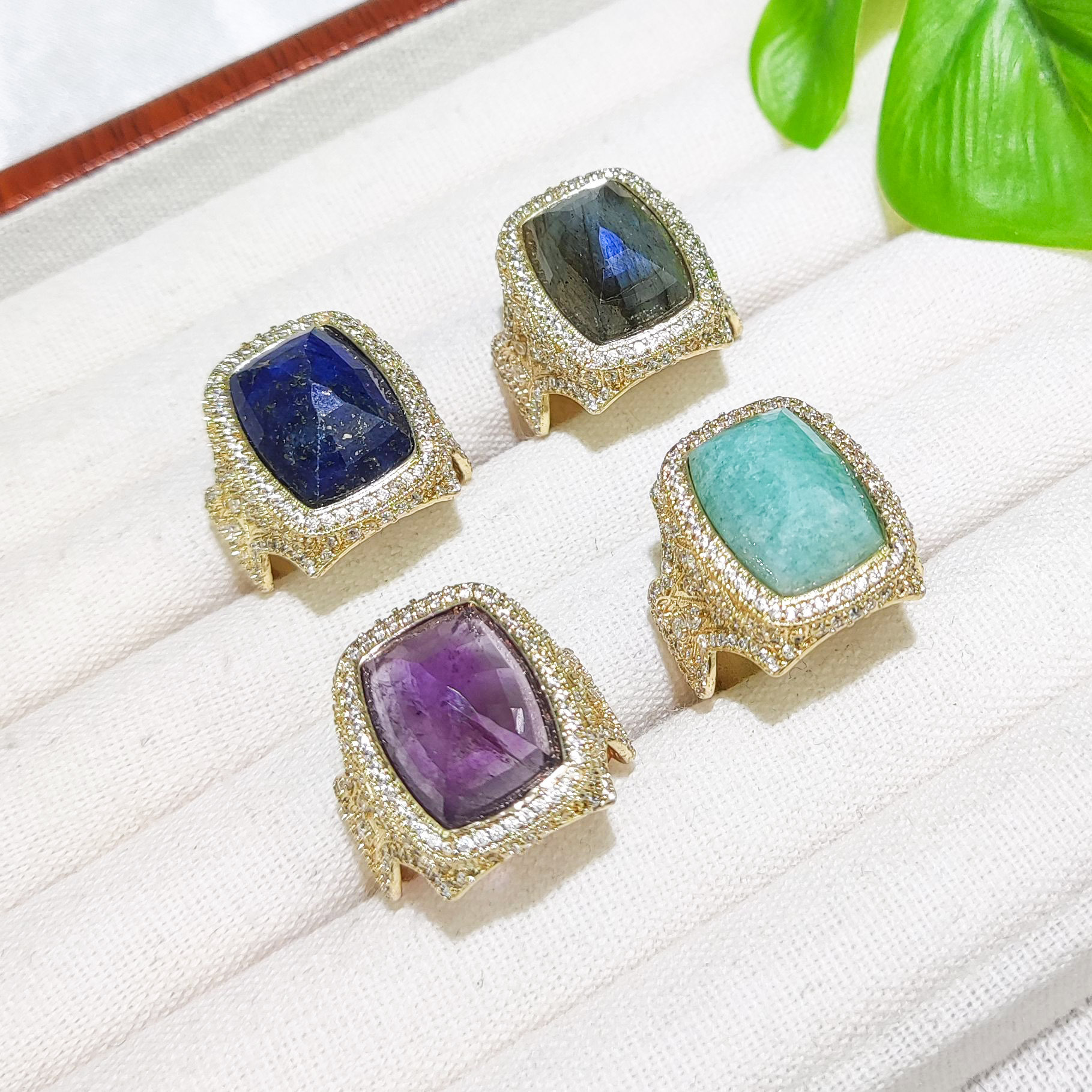 2024新型閃光石モザイク皓石指輪天然紫水晶食指戒紫宝石満ドリル