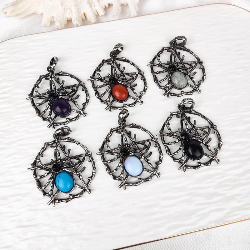 軽豪華小衆デザイン感五芒星レトロ蜘蛛ペンダントクロスボーダー白松石ネックレスファッション気質鎖骨チェーン