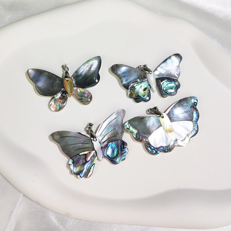 デザイン感天然貝殻蝶ペンダント