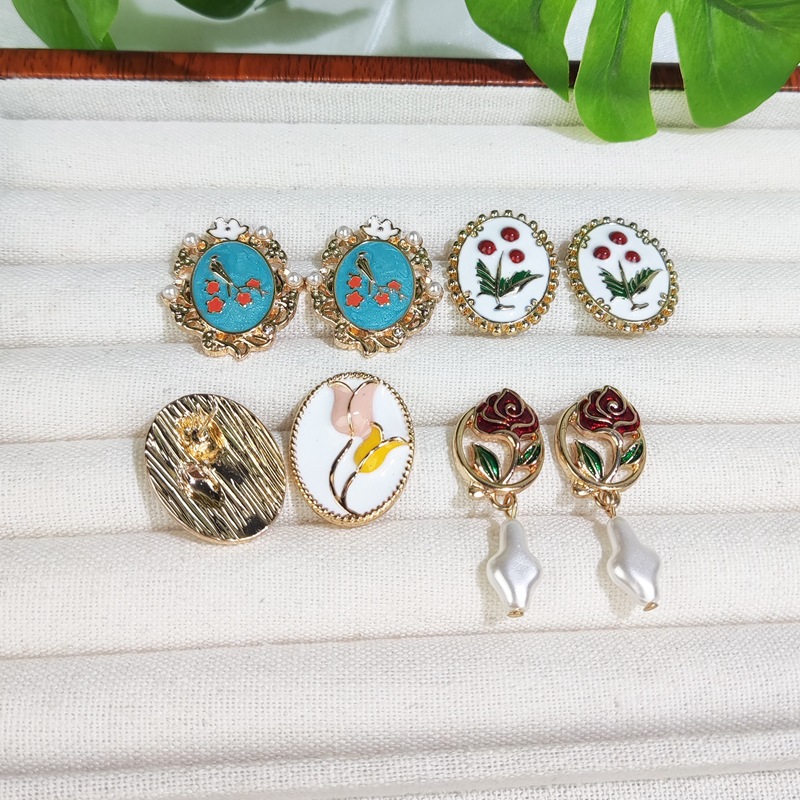 欧米の新しい中国式のエナメルの油のツバキの花のイヤリングの真珠のピアスの耳飾りの小鳥の耳飾りの卸売り
