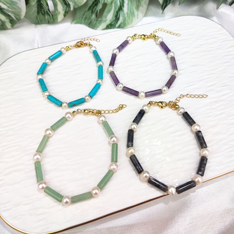 淡水真珠ビーズ手作り紫水晶ブレスレットdiyアクセサリー半宝石ピーコック天然青金ネックレス