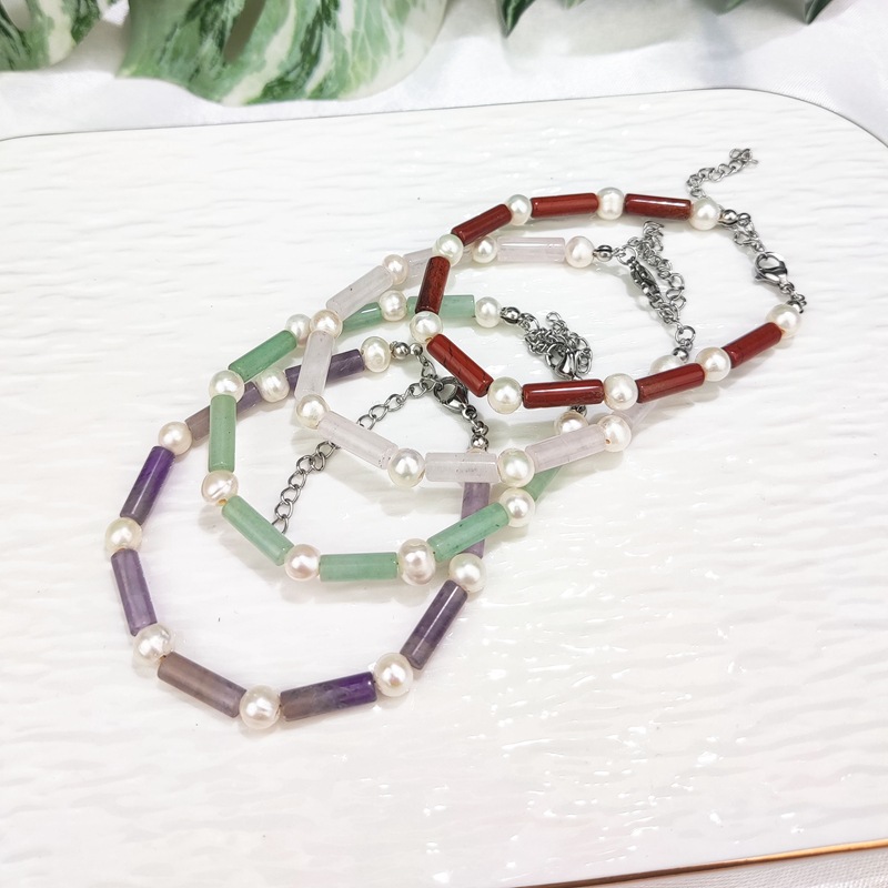 新商品国潮風節高昇竹ブレスレット半宝石紫水晶ブレスレット女性レトロ真珠手飾り
