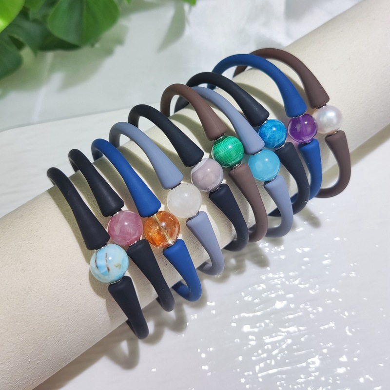 欧米紫水晶ブレスレット弾性シリコンブレスレット10mm天然円水晶ビーズクロスボーダー卸売り