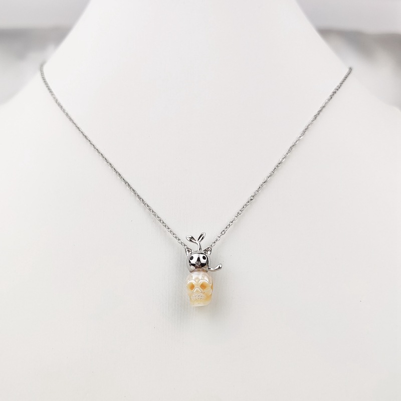 天然淡水真珠彫刻スカルペンダントネックレス