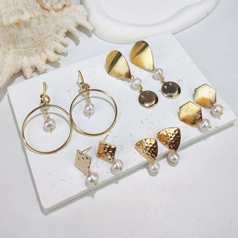 欧米の女性のシンプルな淡水真珠のレトロな大きい円のイヤリングの透かし彫りの幾何学のイヤリングの天然真珠のイヤリングの卸売り