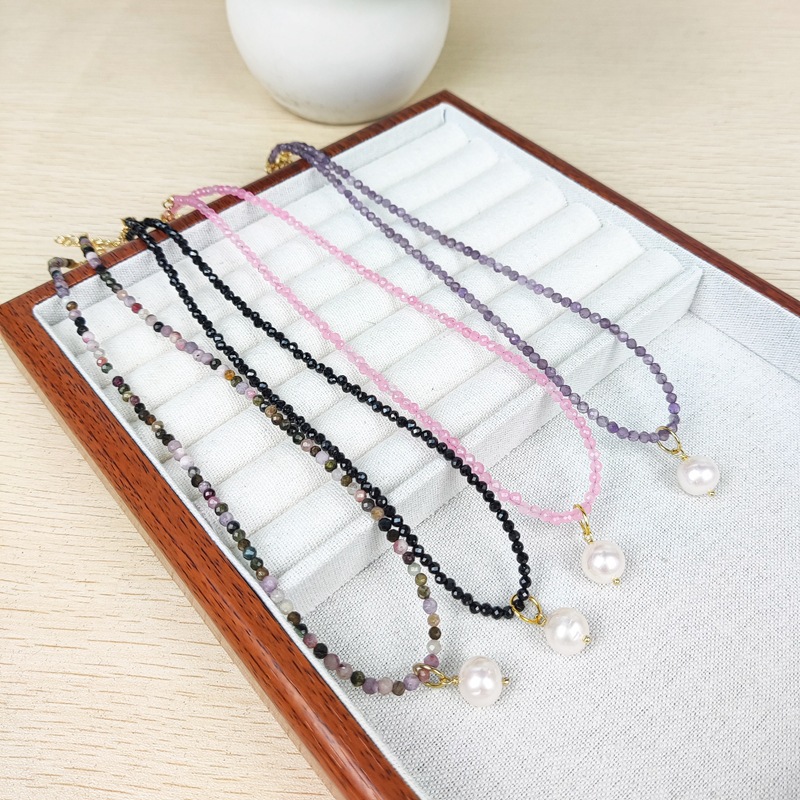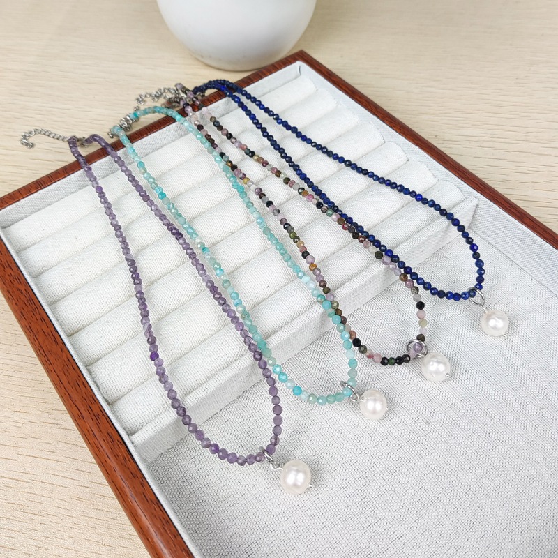 天然水晶カット角度天然石3mm粉晶ネックレス淡水真珠鎖鎖クロスボーダー卸売り