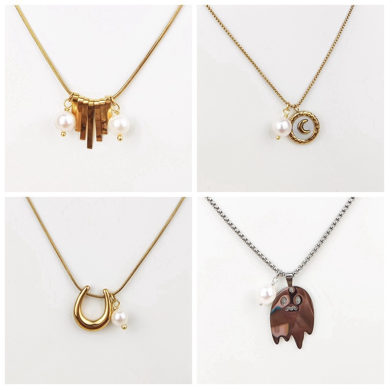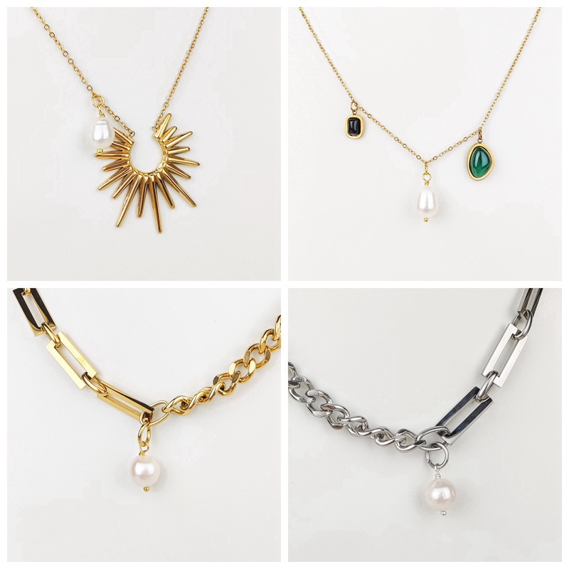 欧米の国境を越えたヒップホップネックレスステンレス淡水真珠ネックレスの個性的なファッション