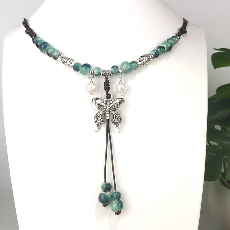 古法新中国式蝶流蘇ネックレスペンダント復古風淡水真珠鎖骨鎖ファッションアクセサリー卸売り