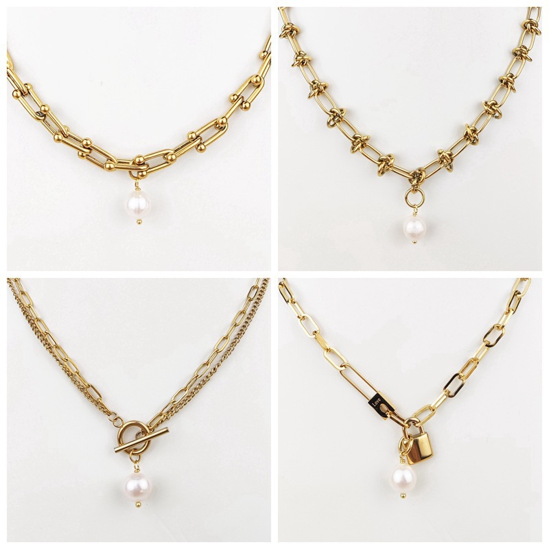 欧米ファッション淡水真珠insネット赤金色太鎖ステンレスネックレス女性ヒップホップ鎖