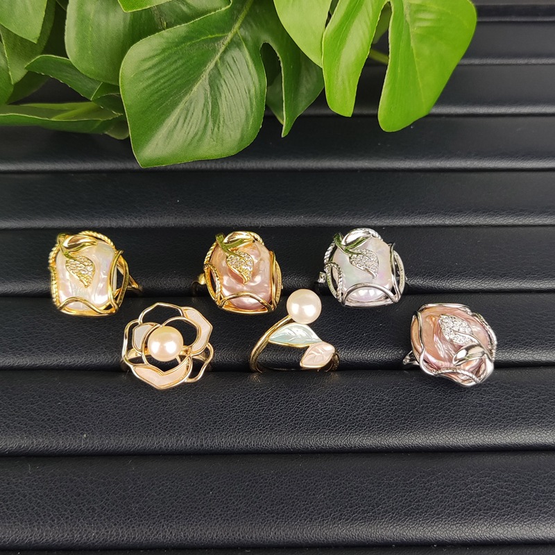 レトロな淡水真珠のツバキの指輪の女性のファッションは冷たい風です。