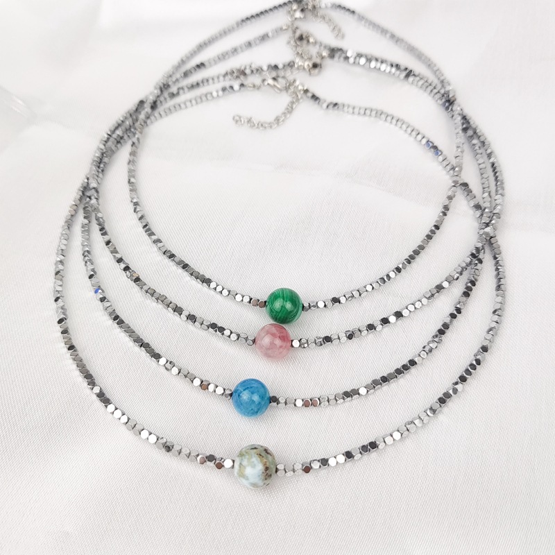欧米のinsの新型レトロな海藍宝の玉の数珠の鉄鉱石のネックレスの女性の百合のシンプルなファッションの鎖