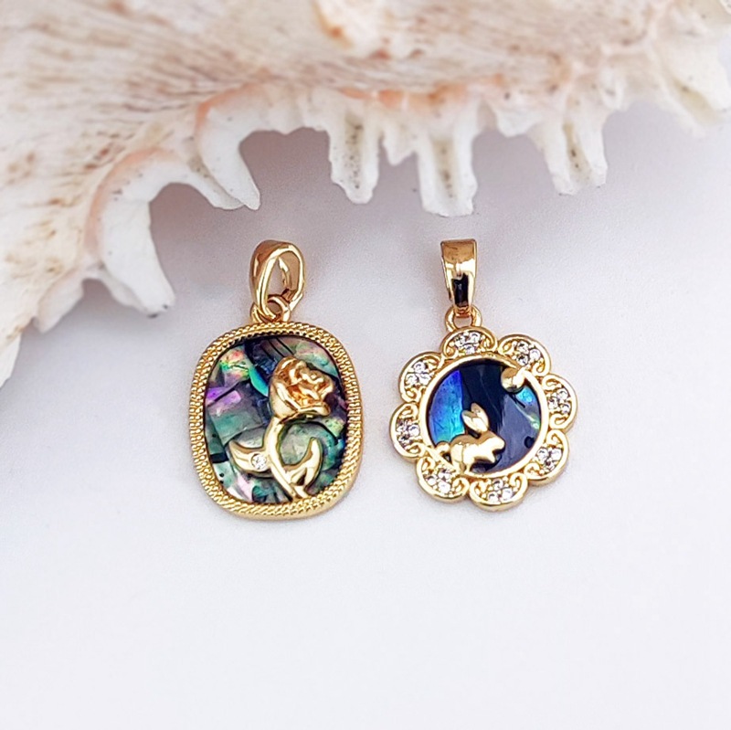 銅メッキの本物のアワビ貝の愛の透かし彫りのペンダントDIYブレスレットのネックレスの幾何学的なペンダントのアクセサリーの部品