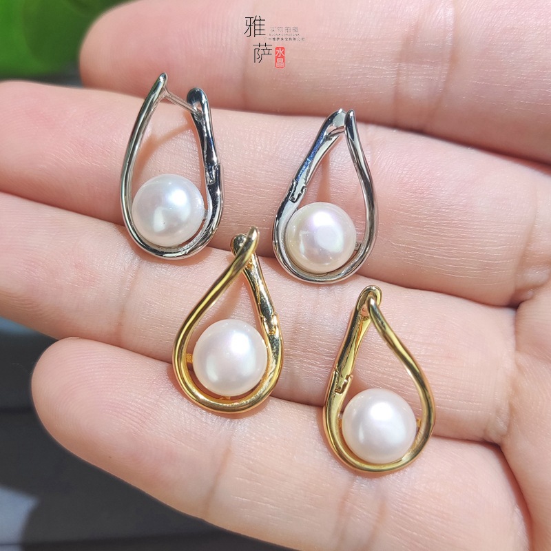天然淡水真珠イヤリング9mm真珠ファッション大衆デザイン趣味かわいい非対称水滴イヤリング女