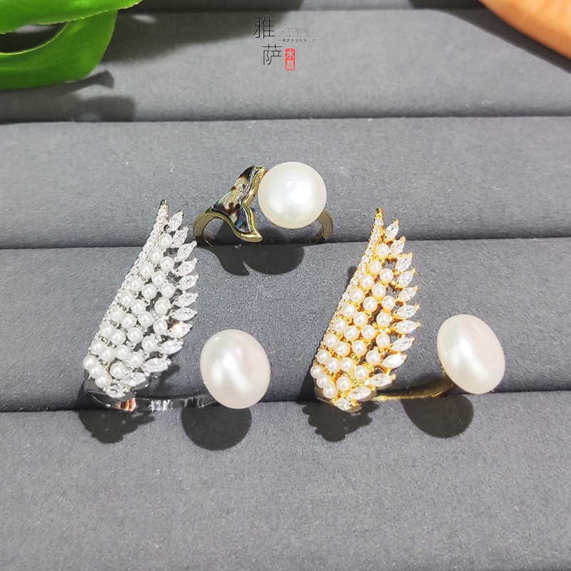天然淡水真珠の指輪皓石の翼の指輪の小さい大衆の個性の魚の尾のマントーの丸い真珠の指の指輪