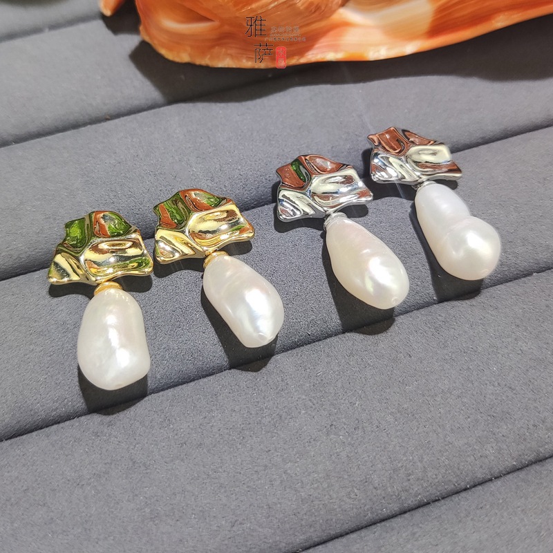 天然淡水真珠両面光10mm真珠イヤリング不規則真珠ピアス