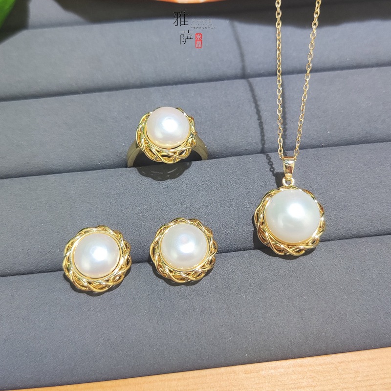 天然淡水真珠7mm半円真珠イヤリング気質百合デザイン感ピアス優雅耳飾り卸売り