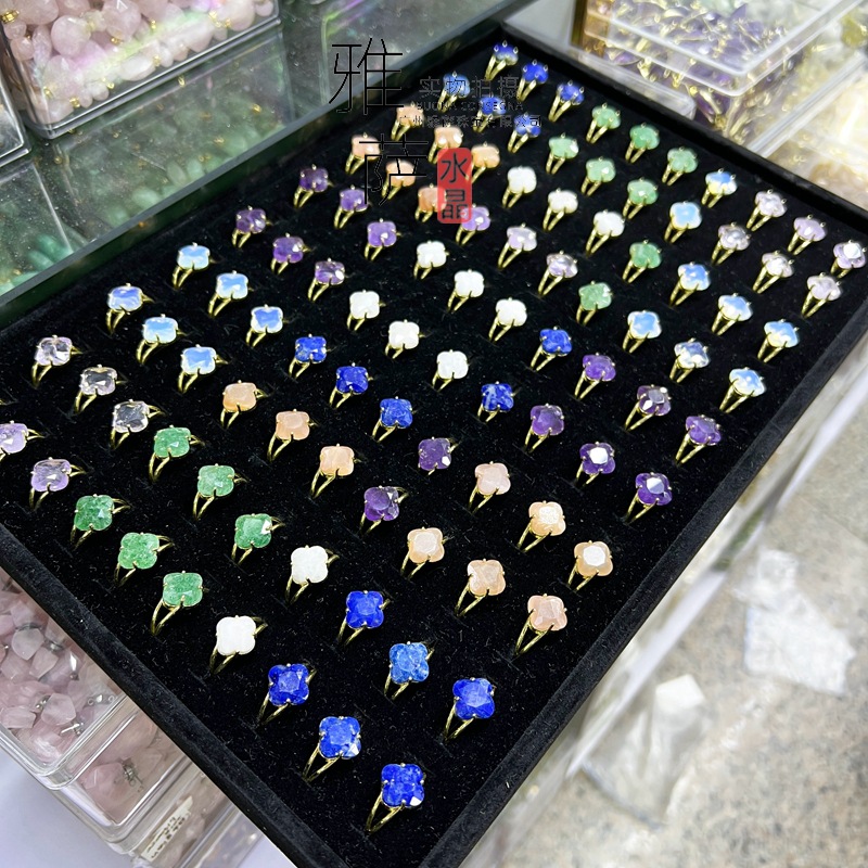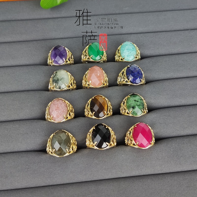 国境を越えた欧米の花びらの開口指輪紫水晶活口指環新製品緑水晶手飾り卸売り