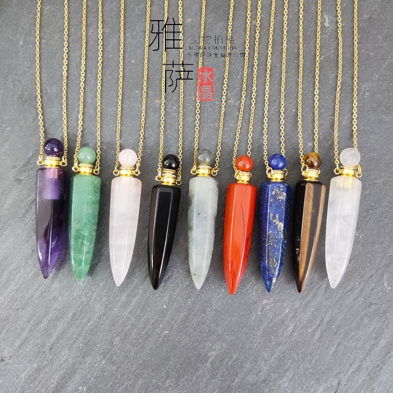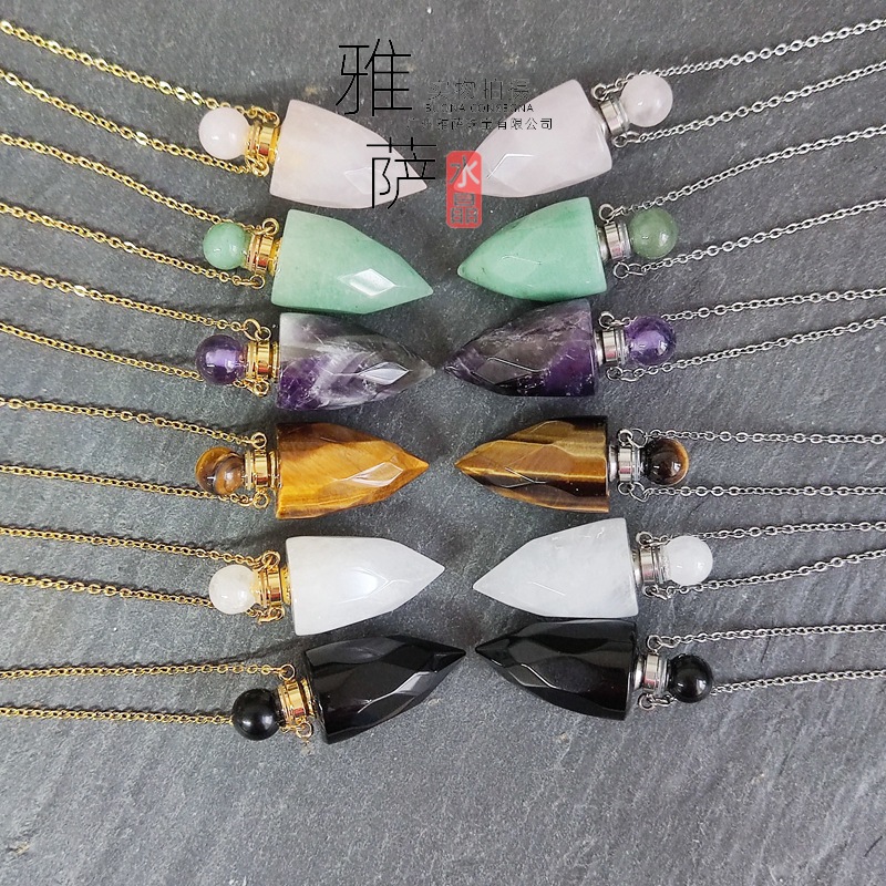 天然水晶香水瓶ペンダント紫水晶白水晶粉水晶原石香薫精油瓶ネックレス
