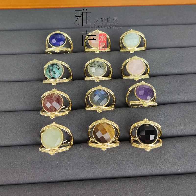 軽豪華小衆切断面虎眼石指輪女ins潮開口デザイン感ぶどう石人差指リング卸売り