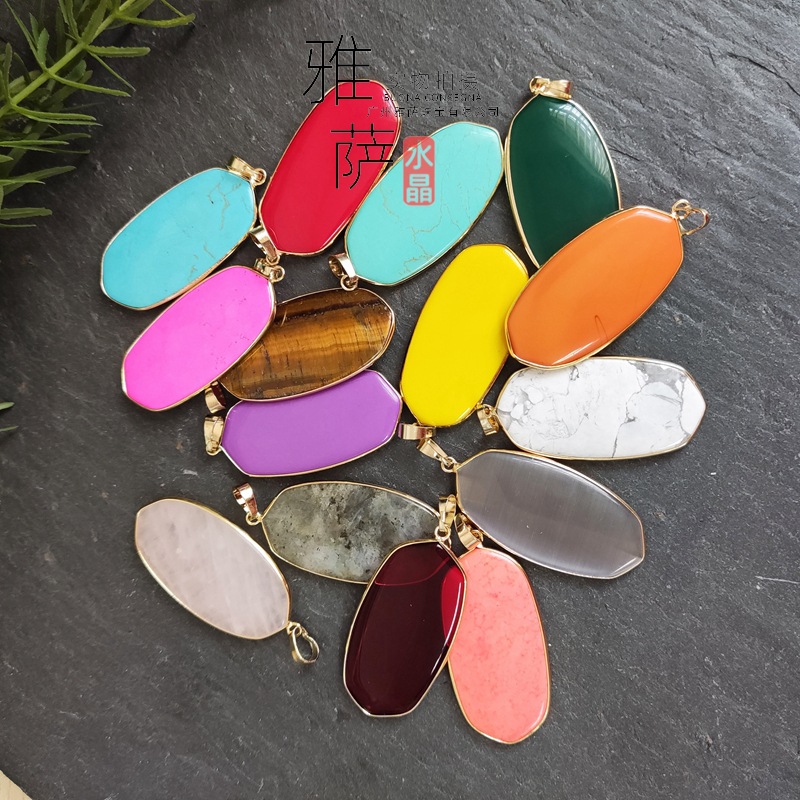 天然石虎眼ネックレスペンダント水晶原石メッキ縁ペンダントカラー宝石ネックレスdiy欧米