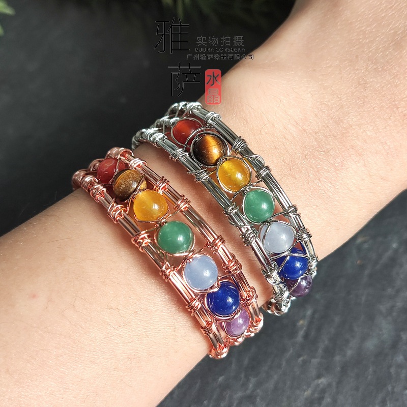 雅サジュエリー手飾り七色石ブレスレット復古アクセサリー黄水晶円珠手環クロスボーダー卸売り