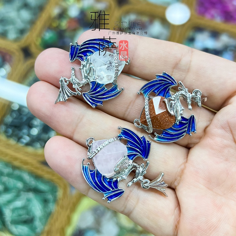 欧米のクロスボーダーの新型誕生石竜のネックレスの愛の粉水晶のペンダントのネックレスの黒曜石のセーターのチェーンの卸売り